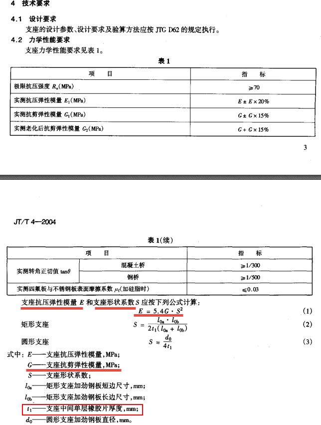 项目遇到公路桥梁板式橡胶支座,需要计算橡胶支座的参数,顺便做个资料整理。