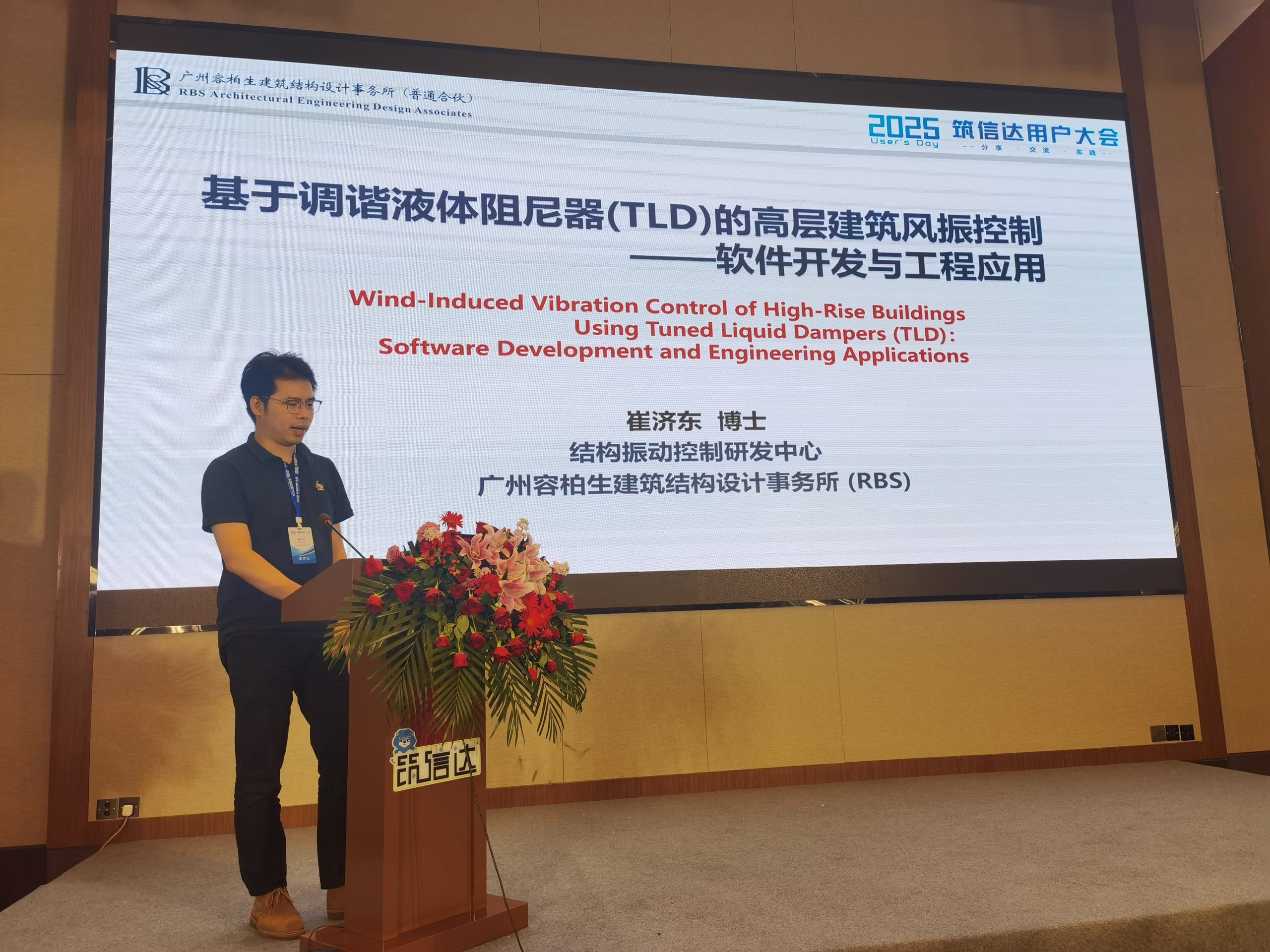 我在“工程软件智能化应用交流专场”分享了题为《基于调谐液体阻尼器(TLD)的高层建筑风振控制分析——软件开发与工程应用》的报告,重点介绍了我们公司(广州容柏生建筑结构设计事务所(RBS))近年在结构振动控制领域的探索,尤其是TLD技术在超高层建筑风振响应控制中的应用与实践。