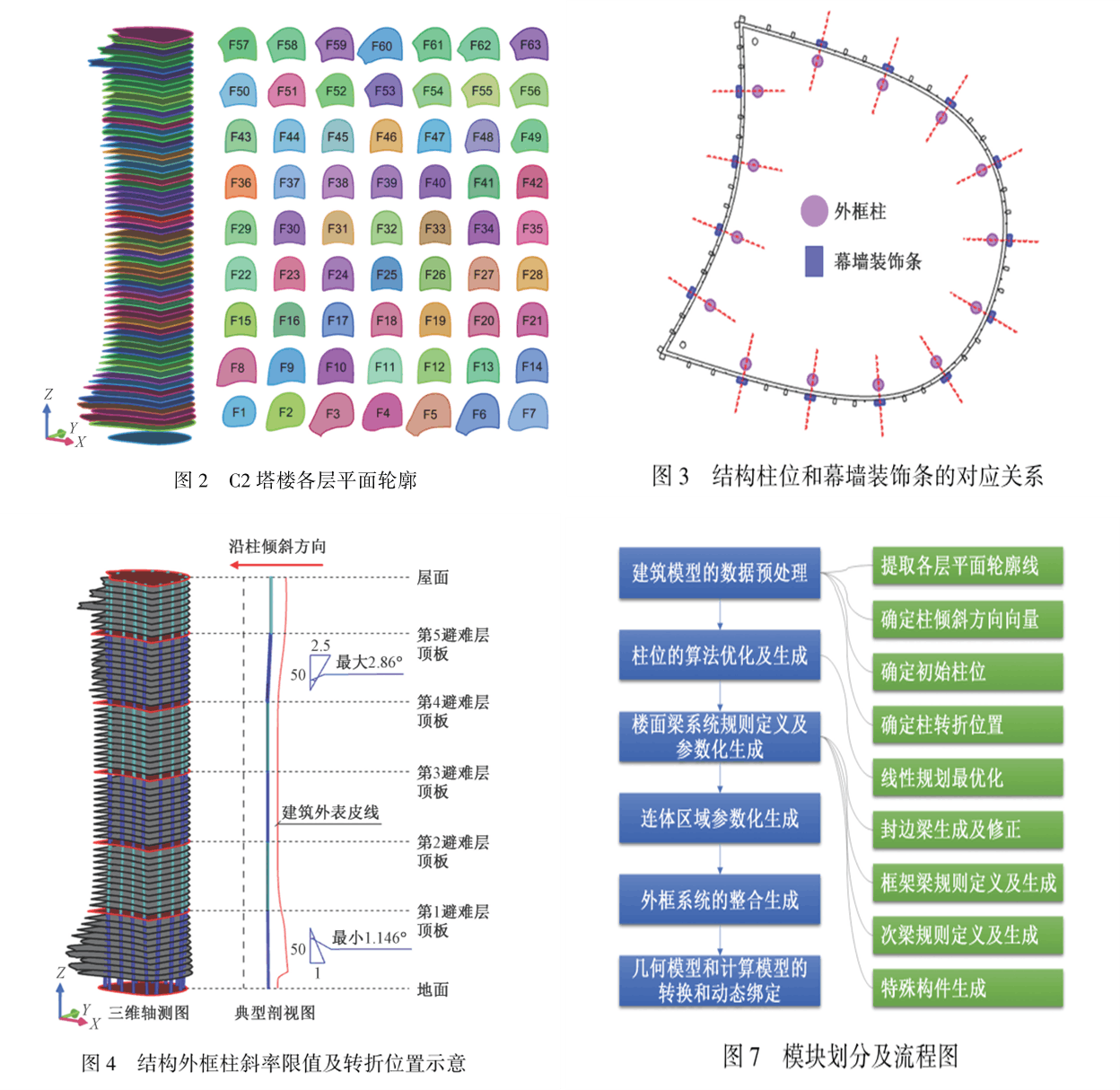 | 【Keywords】 | super high-rise connected building; complex facade; exterior frame structure generation; parameterized design; column position optimization |
