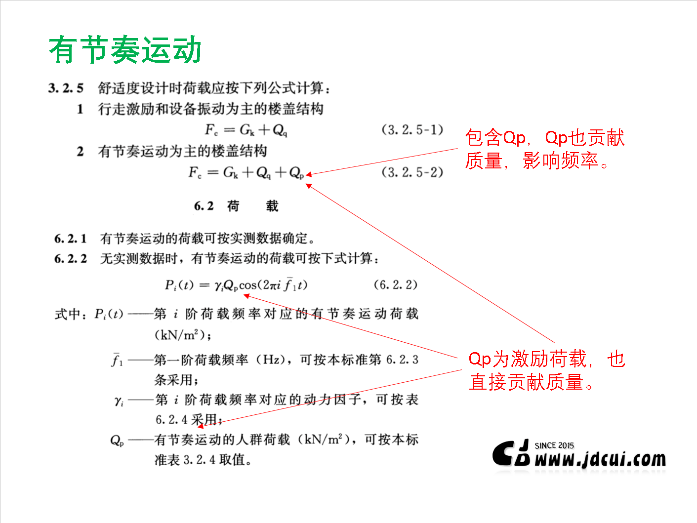 (2)对于有节奏运动,Qp既作为激励荷载,也作为质量荷载,同时影响结构频率。