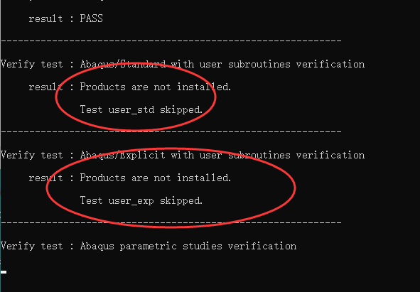 这几天我尝试进行Abaqus子程序的验证,过程中遇到了一些问题。其中最主要的是以下这个错误:在验证子程序时,系统提示“Products are not installed.”,并直接跳过了验证步骤。错误界面如下图所示。
