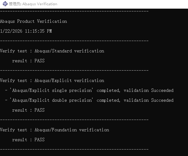 于是,我重新安装了Abaqus,并在完成后进行了简单配置,最终成功完成了子程序验证。验证成功的界面如下。Mark一下!每次都会遇到各种各样的问题!