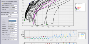 实干、实践、积累、思考、创新。 某位小伙伴向我们咨询,称有一组应变数据需要处理,情况较为复杂。具体需求是提取应变数据的特征点进行分析,但数据非常零散,且涉及多组应变数据,询问是否有合适的处理方法。下图是该应变数据。 其中纵轴为广义力,横轴为应变。该曲线的特点是应变在左右方向往复拉伸,而力值持续增加。若将曲线旋转90度(即水平方向观察),本质上属于单向往复加载数据,如下图所示。 因此,可以利用我们此前开发的CFHLA软件([试验][工具] CFHLA v2025: Cyclic/Fatigue Loading Hysteresis Loop Analysis [单向往复与疲劳滞回曲线分析及骨架曲线提取工具 2025版])进行分析。CFHLA软件是一款适用于疲劳试验滞回曲线 / 单拉或单压往复滞回曲线的分析软件。该软件可提取各个滞回环的结果,具体包括:滞回环的位移、力、面积、阻尼比、割线刚度。新版软件增加了加载段曲线及卸载段曲线对X轴求面积等功能。此外,根据网友建议,新版软件增加了骨架曲线/包络曲线的提取功能。 这里我们主要用该软件分析应力应变数据的特征点,并且得到其正负向的应变包络曲线。下面是软件的一些截图。 教程及案例 (Examples) [01] [工具][教程] CFHLA单向往复滞回曲线分析 使用操作 [02] [工具][试验] CFHLA单向往复滞回曲线分析——案例1: 停顿点修正 [03] [工具][试验] CFHLA单向往复滞回曲线分析——案例2: 凌乱的往复试验数据 [04] [工具][试验] …
